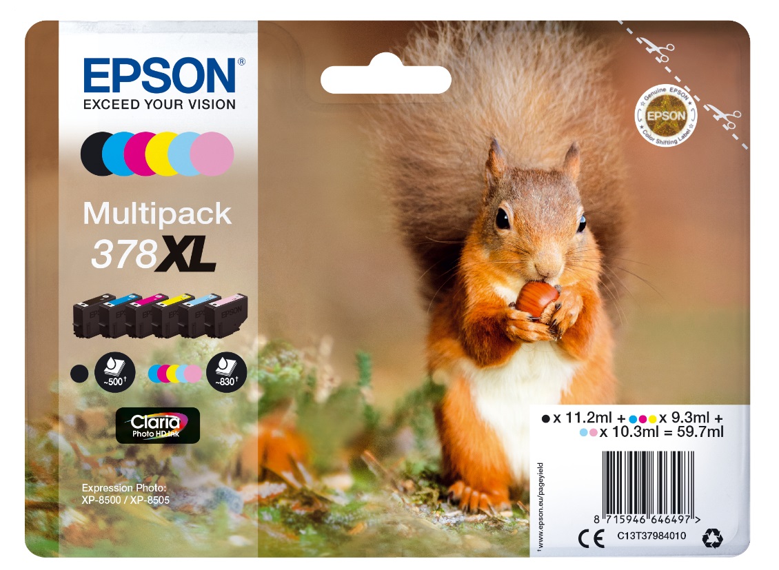 Epson 378XL Multipack Zwart+5 kleuren 59.7ml (Origineel) (groep:Inktpatronen en Toners-epson)