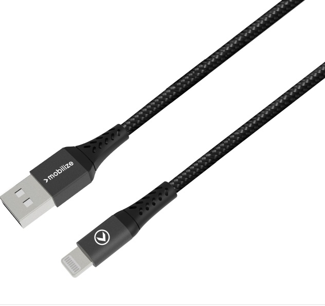 Mobilize Strong Nylon Cable USB to Apple MFi Lightning 20cm 12Watt Black