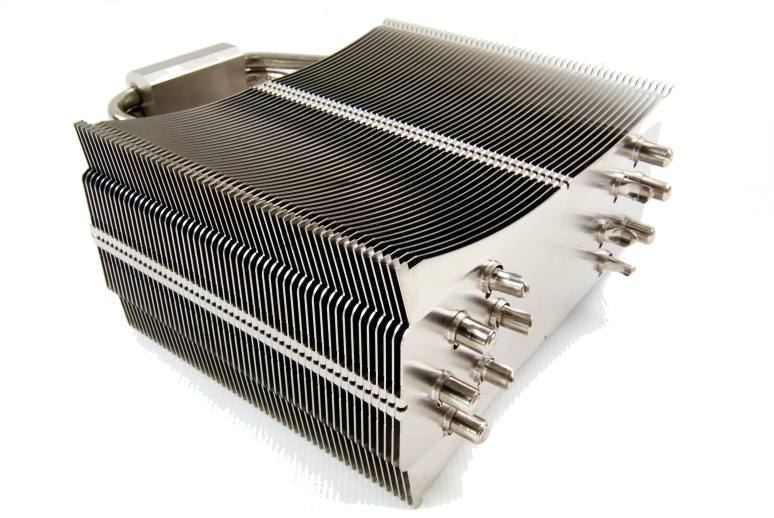 Heat pipes soldered to base (nickel plated)and fins for optimum heat transfer