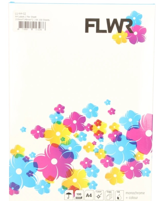 FLWR 210mm x148mm stickervel A4 2 Labels/stickers per vel (bevat 100 A4 vellen geschikt voor laser/inkt jetprinters)
